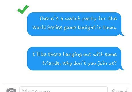 Offer a casual, safe meet up location with friends for your first face to face meeting. Let him know you are interested and would love to chat more over coffee or drinks. To be safe, choose a location that is public and where there will be other people around including a few of your friends. For instance you could say, “My friends and I are going out for drinks later, I would love if you dropped by so that we can meet.” Inform him about a public event you’ll be attending,”There’s a watch party for the World Series game tonight in town. I’ll be there hanging out with some friends. Why don’t you join us?"