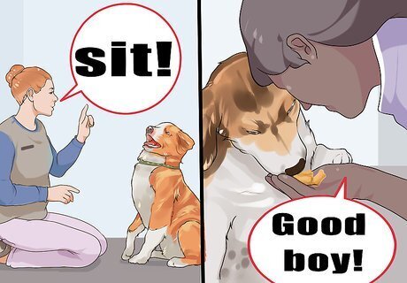 Reward good behavior in your new dog. If the dog you received as a gift comes when you call its name, reward it with a doggie treat and verbal praise. For instance, you might say, “Good dog.” If the dog scratches at the door when it needs to go out, do the same thing. You can also give your dog a treat and verbal praise when it obeys commands like “Sit,” “Lie down,” “Roll over,” “Play dead,” and “Speak.” If your dog sits quietly in the presence of visitors and guests, you can encourage them to continue doing so by offering a treat. If rewarding good behavior seems to do little to end bad behavior in your dog, consider taking it to a “puppy kindergarten” or obedience school. You can locate such an institution by looking one up in your yellow pages.