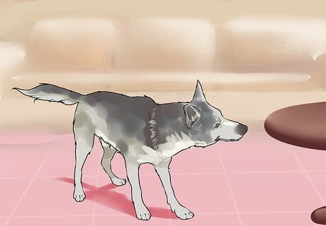 Allow the dog to explore the home. Instead of smothering the dog with affection and attention as soon as it arrives in its new home – which can be stressful for the dog – allow it to introduce itself to its new family naturally. The dog should be free to roam the house and meet other members of your family when they wish to. Set the dog down and allow it to walk around the home on its own. You should, however, monitor it and prevent it from hurting itself near stairs or any other possible danger zones that it cannot yet use. Don’t scream the dog’s name in a high-pitched voice or squeeze it in a tight embrace. Discourage your family members from doing likewise. For instance, you might say, “Please do not engage in boisterous behavior around the dog or smother it with affection. This could cause it undue stress.”