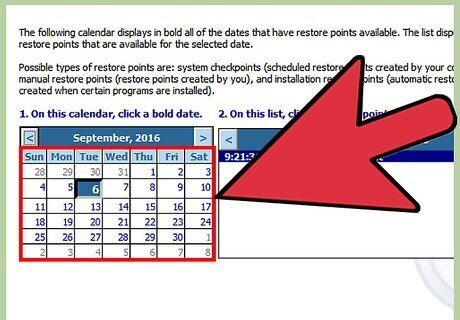 Select a Date to restore your system to. Choose a date on which your computer was running fine, for example, before a system update or installing a program.