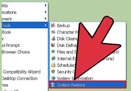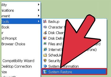 Click on the All Programs link. This is located at the bottom of the list of frequently used programs. Alternatively, you can click on Help and Support and type in “system restore” in the search bar. This will give you a detailed description of what a System Restore is and include a link to open the System Restore guide. You can skip to Step 6 if you want to use the Help and Support menu.