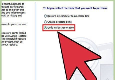 Repeat Steps 1-6 above. When you have mistakenly restored your system to an earlier configuration that you do not want, you can undo the last System Restore.