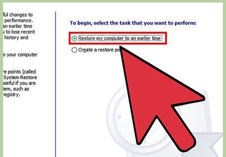Select Restore my computer to an earlier time. Click Next to continue. You can force the system to create a Restore Point before you install a new program or operating system. That way, if anything goes wrong, it will be obvious which Restore Point you want to go back to.