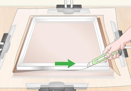 Choose an adhesive. They are often identified by low and high viscosity, and what you need will depend on your mesh count. There are many trade grades of adhesive available for mesh counts from 110 to 355. Ask your printing supplier for recommendations. The right adhesive is essential to bond the fabric to the frame.