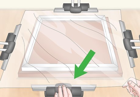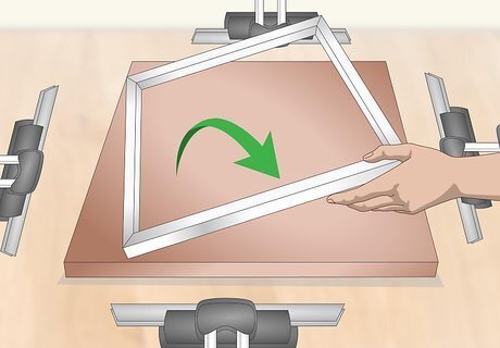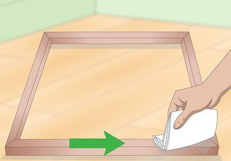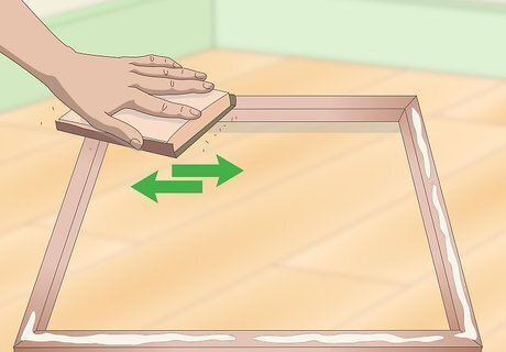 Use 80-grit sandpaper to roughen up the areas of your frame that will be glued, if your frame is wooden. It helps overall adhesion by creating places on which the glue can easily attach and hold. Aluminum frames do not need to be sanded.