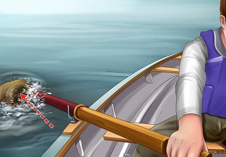 Point the bow of the boat toward the obstacle (also called “setting up the boat”) and backstroke away from it. Leaning away will increase the chances of flipping the boat. Pivot the boat by dragging one oar in the water while backstroking with the other oar until the drift boat is about 45-degrees across the river current. Backstroke with both oars away from the obstacle. Straighten out the drift boat and move the boat around the obstacle.