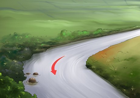 Be wary of the river’s outside bend where the water’s velocity increases and often collects downed trees and rocks. Set up the boat when you spot the outside bend. Aim the stern of the drift boat toward the bend’s inside corner. Use the backstroke to push the boat away from the outside bank.