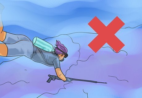 Inform the lookout of your plans and have him or her monitor the water for sharks and excessive dive times. Discuss your working depths, cinch on your weight belts and slip calmly into the abyss. Strive to relax to keep from hyperventilating, and soon you will recall the cold and darkness of the deep.