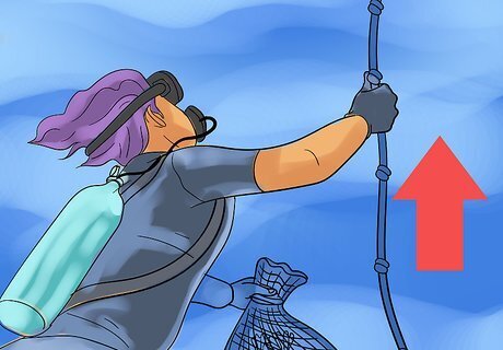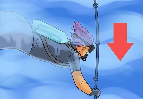 Throw an additional rope in the water. This rope is for the divers to get a sense of bearing and should be knotted at intervals to signify depth.
