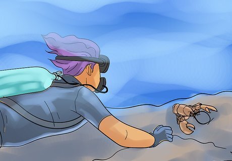 Anchor the boat. Lobsters can be found in waters from ten feet deep and deeper. Most people should not go deeper than 30 feet (9.1 m).