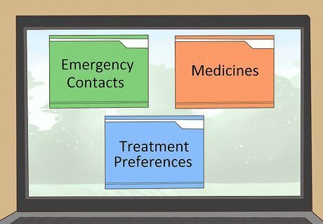 Create an emergency action plan. Let your loved ones know your plans to stop taking medications. Despite your best efforts, you may encounter symptoms or a relapse of your mood disorder. Plan ahead and know what you (and your loved ones) can do. Have a list of emergency contacts readily available. This can include your medical doctor, therapist, and close family members. Keep a list of all medications you take, as well as any medical diagnoses you have or life-threatening allergies. Outline your treatment preferences. You may wish to be directly taken to the Emergency Department, or admitted to a clinic nearby. Specify your wishes and make them known.