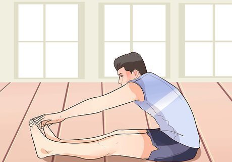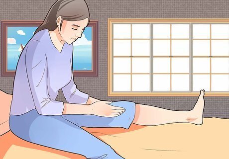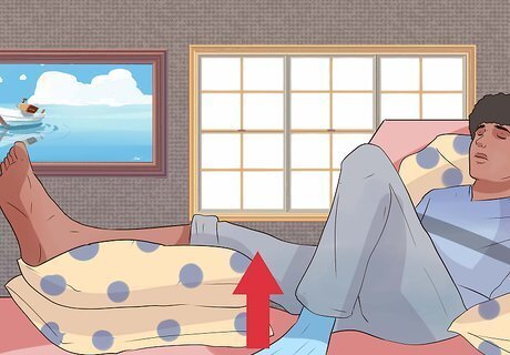 Elevate the affected area. Elevating your leg will work with the other steps of initial treatment to minimize the amount of swelling. Keeping swelling to a minimum is important when trying to reduce the amount of flexibility and strength lost. Always keep the injury elevated when resting and recovering. Putting a pillow under your leg is enough to elevate the area.