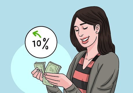 Put away at least ten percent of your income. In an ideal world, you wouldn't need or want to spend any money at all and would be able to save it all, but this is simply too unrealistic of an expectation. You'll want to account for things like phone credit, data, fuel, board/rent, food, and other expenses in your life. If you still live at home and don't need to pay for anything, you still may want to spend a little bit of money to reward yourself or go out with friends. By saving at least 10% each week (or however frequently you get paid), you're putting away a small amount that will add up in the long run. If you are able to put away more, that is brilliant! Do that - the more you're able to save each time you're paid, the faster your savings account will grow. Remember to reward yourself for your good money habits - it might seem a little backwards at first, but it's good to not be so hard on yourself that you cannot enjoy any of the money you're earning until you reach your goal. If you can't always save the same amount each time, don't worry - just do your best!