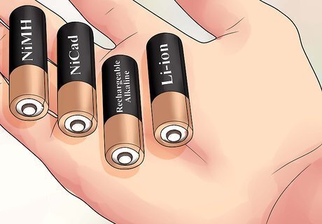 Fit the correct rechargeable batteries with high-draw devices. Look in the battery compartment of your electronics and determine whether it uses AA, AAA, C, D, 4.5V, 6V, or 9V batteries.