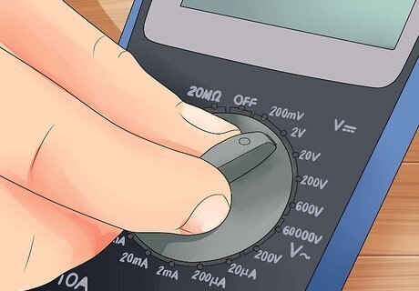 Turn the dial of the multimeter to the 2V selection in the DCV area on the face of the multimeter. This action will also turn on the power and the display will show something like 0.00 or .000. If there is no display in the multimeter window, check for a manual on/off switch and turn it on. (Some multimeters may not have a 2V range in which case use the 5V range).