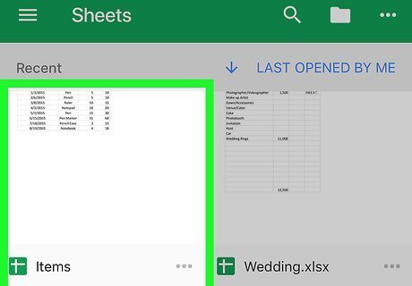 Tap the spreadsheet you want to edit. Find the spreadsheet file you want to search in your saved files, and tap on the file's name to open it.