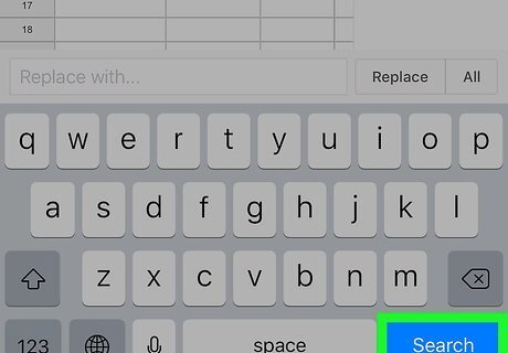 Tap the blue Search button on your keyboard. This will search the spreadsheet and find all the matching results. The total number of matches will pop up below the search bar when you hit the Search button.