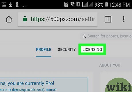 Go to https://www.500px.com in your Android’s web browser. Selling your photos requires updating your licensing settings, which can only be accomplished on the web.