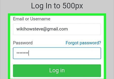 Sign into your account. If you use a username and password to access 500px, type that information into the blanks and then tap Log in. If your account is linked to Facebook, tap Continue with Facebook, and then tap Continue. If you don’t have an account, see this wikiHow to get started.
