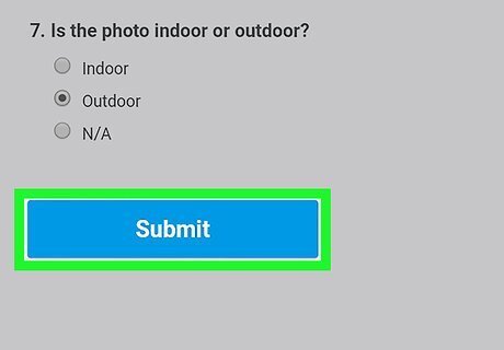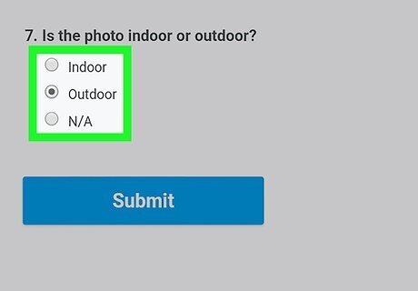 Choose the photo’s location. Select Indoor, Outdoor, or N/A under Step 7 to describe the photo’s setting.