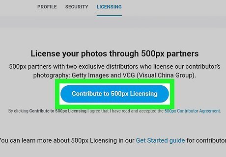 Tap Contribute to 500px Licensing. It’s the blue button near the top of the page. A list of your photos will appear.