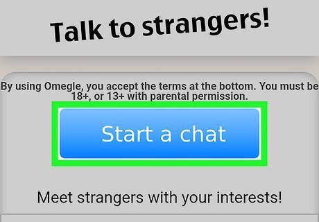 Tap on Start a chat. This will start a chat with a random stranger. If you add your interests, Omegle will try to match you with someone that shares your interests. You can do this by tapping on Add your interests and typing in the box. If you tap on the Windows Unchecked check box, you can add your Facebook likes as topics. This will require you to sign in with your Facebook account for Omegle to gain access to your likes. Your identity will remain anonymous for the actual chat. If you are a college student and want to chat with other students, tap on College student chat to enter your college email address for verification. Other users will not be able to see the first part of your email, but they will be able to see the domain address, likely your school name.