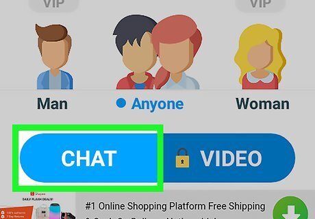 Tap on Chat to continue. Omegle will then search for a random match with another user. Video chatting requires the VIP membership, but the process is similar to text chatting.