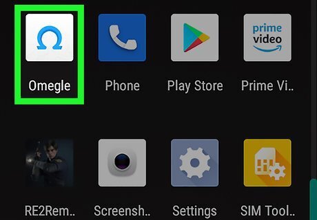 Open the Omegle app on your device. The app icon is a blue omega symbol on a white background. If you do not have the app installed, it can be downloaded for free from the Android Google Play Play Store by searching for Omegle in the search bar. When you first open the app, Omegle will request permission for access to your camera and microphone. This is required if you want to video chat.