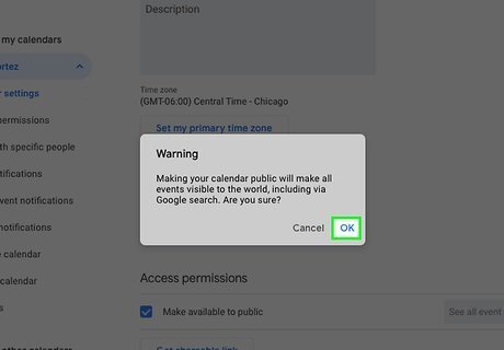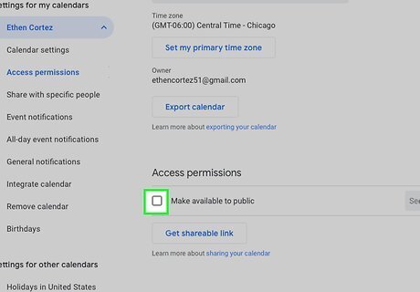 Check the box next to Make this calendar public. You can find this option under the "Access permissions" heading.