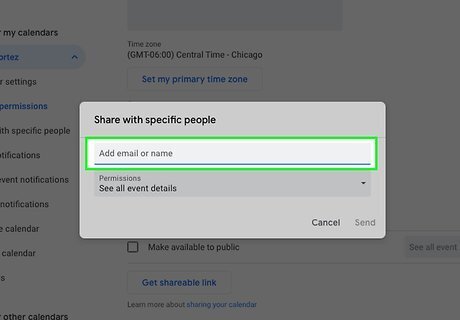 Enter the email of the person you want to share with. Type your contact's address in the "Add email or name" field. You can select a matching person from your contacts as you type.