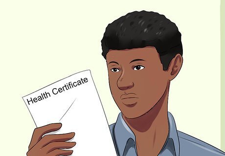 Get a health certificate for your pet. Your vet can provide you with a copy of your pet’s health certificate stating the pet is free from infectious disease and healthy enough to travel. The certificate should confirm that your pet has received his rabies vaccine and has been treated for tapeworm, if applicable. Your pet should travel within 10 days of the certificate being issued. The certificate is valid for four months if your pet does any more travelling within the UK. The certificate will be reviewed and stamped by an official when your pet first enters the UK.
