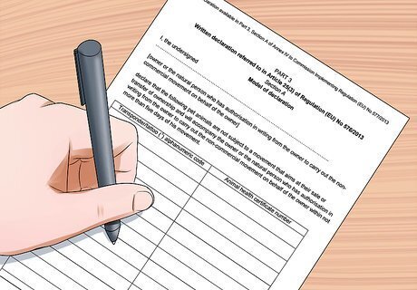 Fill out a declaration form for your pet. Before your pet can enter the UK, you will need to confirm that your pet is not coming into the UK for commercial purposes. You can fill out the declaration form at home and bring it with you when you are arranging for the shipment of your pet to the UK. A blank UK declaration form for pets can be found here: https://www.gov.uk/government/uploads/system/uploads/attachment_data/file/393123/declaration-non-commercial-movement.pdf.