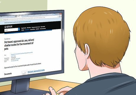 Confirm the transport company is approved for pet travel to the UK. Your pet can only travel to the UK with an approved transport company on an approved route via air travel, sea travel, or rail travel. You are not allowed to bring your pet on a private boat or plane from outside the UK unless you are travelling from Ireland. A list of approved routes under the Pet Travel Scheme can be found here: https://www.gov.uk/government/publications/pet-travel-approved-air-sea-rail-and-charter-routes-for-the-movement-of-pets. Keep in mind if you are travelling with more than five pets or planning to ship more than five pets at once, you will need to comply with additional rules and guidelines. Ask the transport company about the guidelines around shipping multiple pets at once.