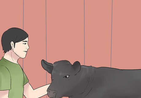 Begin training three months before the show. Starting three months before the show will give you an adequate amount of time to break-in your heifer and train it. Additionally, you want to start training your heifer when it is a calf, ideally after it has been weaned. This way you can build up trust between you and your heifer.