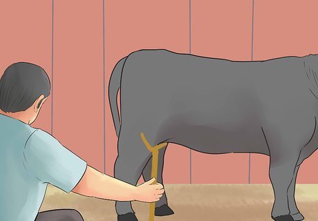 Teach your heifer how to stand. Your heifer must know how to stand correctly as well. Use a show stick to adjust the placement of your calf's feet as it stands. Your calf's feet should be positioned squarely underneath it; for example, the front legs should be side by side and slightly apart.
