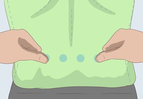 Perform acupressure on yourself. Stimulating acupressure points on your back may to help relieve pain. There are four points on the lower back that are associated with alleviating back pain. The acupressure point for back pain are located near the spine at about waist level and between the second and third lumbar vertebrae. Gently press on these points to help relieve your pain. You can find the exact spots which to stimulate at http://acupressurepointsguide.com/most-important-acupressure-points-for-back-pain/