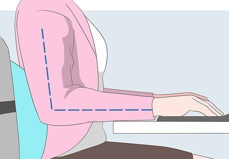 Adjust your chair. Having a properly adjusted chair can reduce the strain on your back. Adjusting your chair to the proper height for you may not only reduce the strain on your back, but also relieve your discomfort. You should adjust the height of your chair so that you can type with your wrists and forearms straight and parallel to the ground. A good way to judge if your height is correct is to see if your elbows are by your body and form an L-shape at your joint. Change the back position and tilt of the chair so that you're comfortable and your back is supported.