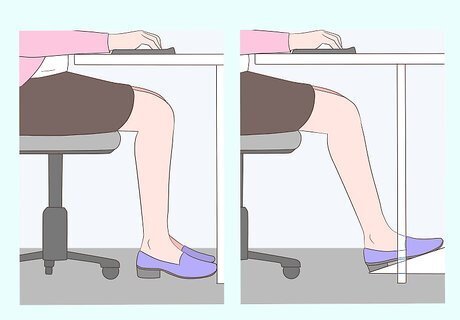 Rest your feet flat on the ground. Once you’ve adjusted the height of your chair, your feet should be resting flat on the ground. This can help keep your back in a neutral position and relieve your discomfort. You can use a footrest if necessary, which may also provide additional support for your back. Avoid crossing your legs, which can cause you to sit in less than optimal positions and contribute to your discomfort.