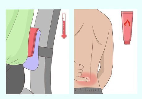 Employ heat therapy. Using heat on tense muscles not only can help relieve your pain, but may also relax your muscles. From heating pads to heat rubs, there are many different types of heat treatments that can help relieve your back pain while sitting at work. Fill a hot water bottle or get a heating pad and place it on your chair on the affected area. Over the counter heat rubs may also help alleviate pain.