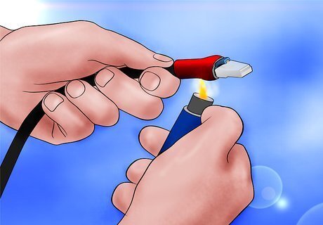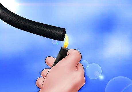 Singe the sleeving's ends. To avoid fraying and un-weaving, use a heat source, such as a lighter, to singe both ends. Most sleeving cut from a manufacturer or distributor will already be singed at the ends. Whenever you make a cut into the sleeving, singe the ends on both sides of the cut.The first photo shows frayed edges of sleeving that has not been singed or treated in any way. The second photo shows sleeving with a singed end to keep it from fraying.Note: Be careful when using a lighter. Too much heat can cause discoloration of the sleeving (which probably won't matter if you're putting heat shrink over it). More importantly, the sleeving could melt too much, causing bumps to form on the sleeving edge. This will show up through the heat shrink as surface blemishes. The best way to get fray resistant ends is to use a hot-knife cutter, or a soldering gun with a blade attachment. There are also several types of fray resistant braids on the market that are naturally fray resistant due to the braiding process during manufacturing.