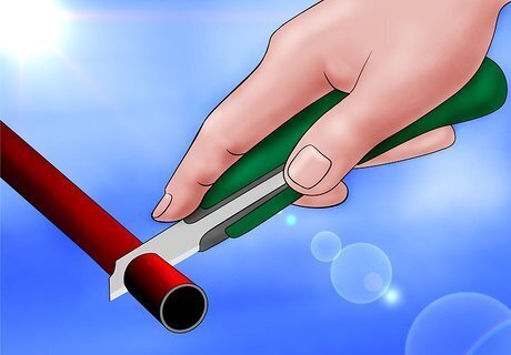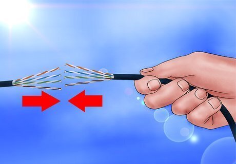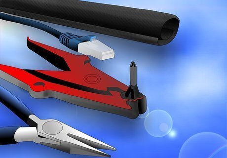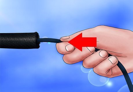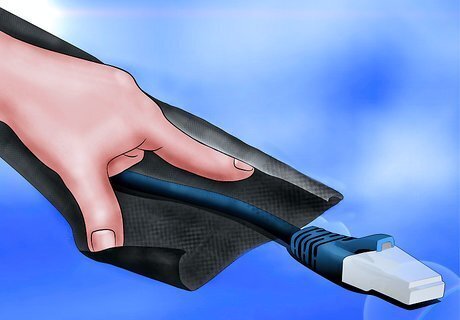 Install sleeving. Put the cut sleeving on the cable, pushing it up the cable in a fashion of movement similar to an inchworm. Squeeze down to hold one side of the sleeving in place with your first hand. Use your other hand to push the sleeving together. Release the grip of your first hand. Repeat until sleeving has been completely installed.