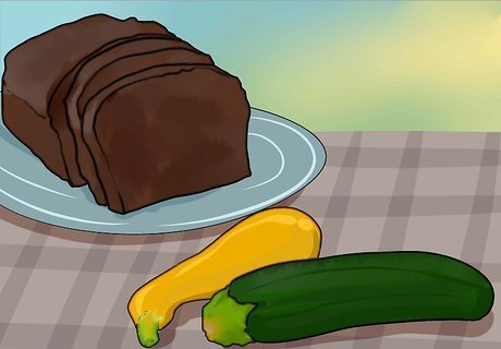 Include summer squash. You may not think that summer squash like zucchini or yellow squash would work well in desserts, but both of these summer vegetables have very little flavor and can be shredded into a variety of desserts. Neither zucchini and yellow squash are overly nutrient-dense; however, they're low in calories and contain a moderate amount of fiber and Vitamin C. If you want to use either zucchini or yellow squash, make sure to shred them finely and squeeze out any liquid before using. They're great used in quick breads, muffins or cakes. You may want to consider peeling them to avoid seeing any flecks of green or yellow in your foods; however, adding chocolate to these dishes can hide any colors (like chocolate zucchini bread).