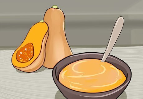Choose sweet winter squashes. Naturally sweet winter squashes (like butternut squash and pumpkin) are commonly found in desserts — especially in the fall and winter. Their sweet flavor pairs well with many dessert recipes and sweet spice mixes. Pumpkin puree is a delicious addition to donuts, while butternut squash puree is wonderful in fudge. Winter squashes are known as very nutrient-dense vegetables. Their bright orange color signifies they are exceedingly high in Vitamin A. In addition, they're high in fiber, Vitamin C and beta carotene. Winter squashes need to be boiled or roasted and then pureed or mashed in order to be used in recipes; however, using 100% canned pumpkin or butternut squash works as well. They have a smooth and creamy consistency which works well in baked goods and as the filling of pies. You can use winter squashes to make traditional pies (like pumpkin pie) but they can also be used to make puddings, muffins or quick breads.
