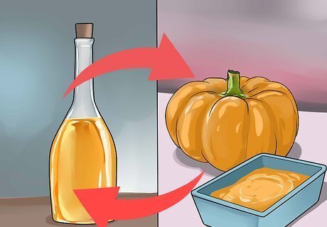 Use pureed vegetables as a fat replacement. To make recipes a little more nutritious and lower in fat, you can use pureed vegetables in place of the butter or oil in many recipes. This helps boost the nutrition and helps you meet your daily vegetable needs. Many recipes that use pureed vegetables use the same ratio requirements that are recommended when using applesauce in recipes. It's a 1:1 ratio pureed vegetable to oil. For example, if your recipe calls for 1/4 cup of oil, you'll want to replace that with 1/4 cup of a pureed vegetable (like pumpkin). Although this type of substitution does help improve the nutrition of a dessert, it will change the texture and flavor slightly. It's recommended to let baked goods sit to cool for a minimum of 10 – 15 minutes to prevent crumbling when they're sliced or cut.