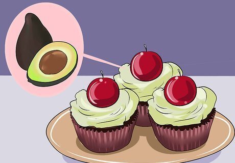 Include healthy fats with avocado. You can make many more recipes with an avocado outside of guacamole. This creamy vegetable is full of healthy fats which makes it a great addition to many dessert recipes. Avocado is a very nutrient-dense vegetable. It's known for being very high in many heart-healthy fats. It's also high in Vitamins E, C, K and the antioxidants lutein and beta carotene. It is also high in calories, however, so keep in mind it will make your dessert more nutritious, but not necessarily low-calorie. Like beans, avocados can be pureed into a smooth and creamy dessert ingredient. Their healthy fats make them very rich and almost decadent which helps make any dessert feel a little more indulgent. Avocados can be added to many desserts; however, their green color might show, so you may want to pick recipes that are chocolate based or are dark colored after they're baked or cooked. You can add avocados to homemade puddings, mousses and ice cream (especially chocolate) and they can even be added to baked goods like chocolate or red velvet cupcakes. Try making fudge popsicles with avocado for a cool treat!