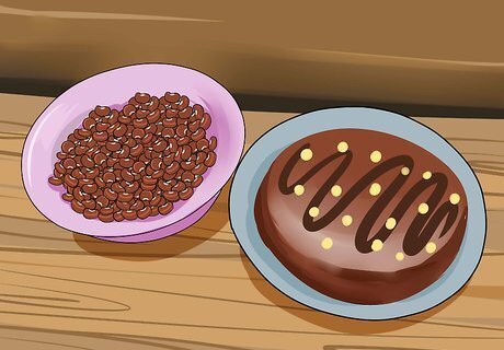 Whip up black bean brownies. Make a higher fiber, higher protein version of brownies by adding black beans. They'll be totally concealed by the dark color of the brownies but not affect the delicious chocolate flavor. To start, preheat your oven to 350°F (177°C). Grease an 8"x8" baking dish with butter or cooking spray. In the bowl of a food processor blender, combine the following ingredients: three eggs, 1 can of black beans (rinsed and drained), 3 tablespoons (44.4 ml) of vegetable oil, 1/4 cup of cocoa powder, 2 tablespoons (29.6 ml) agave a pinch of salt, 1 teaspoon of vanilla and 1 teaspoon of instant coffee powder. Blend until completely smooth and combined. Pour brownie batter into the greased baking dish. Sprinkle over 1/2 cup of chocolate chips evenly over the top. Bake about 30 minutes or until the sides of the brownies began to pull away from the sides of the baking dish. Allow to cool for 10 – 15 minutes before slicing and eating. You can add 1/3 cup quick-cooking oats to this recipe for some additional fiber.