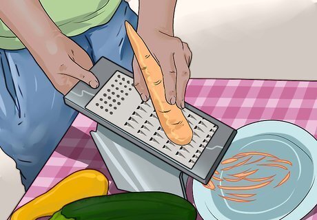 Shred vegetables. If you don't have an overly picky eater in the house, you might want to consider using shredded vegetables; however, these can contain a lot of liquid which you'll need to be careful of when you're cooking. Vegetables that can be shredded and used in many dessert recipes — especially baked goods — include: zucchini, summer squash, carrots and beets. These can be a great source of extra nutrition in baked goods, but also add a little moisture to your dessert items. Some vegetables, like zucchini, need to be drained so you don't add too much extra liquid to your recipe. This is especially important for baked goods. Most recipes suggest squeezing fresh shredded vegetables in a clean dish towel until all the water is squeezed out.