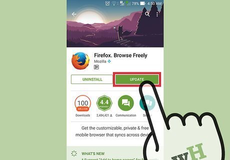Click the menu button. This icon—three dots in a vertical row—is located in the very top, right corner of the screen. Select “My Apps” from the drop-down menu. Scroll through the list and search for a Firefox update. Press “Update”.