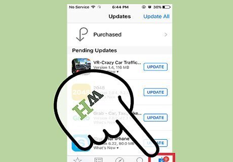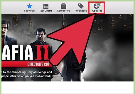 Press the “Updates” icon at the top of the window. This icon (downward pointing arrow inside of a circle) is right of the “Purchased” icon and left of the search bar.