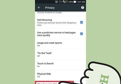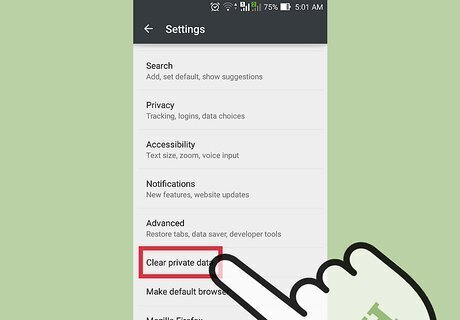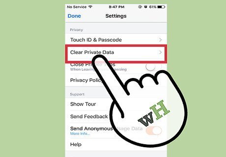 Tap “Clear Private Data”. This option is located in the “Privacy” section.